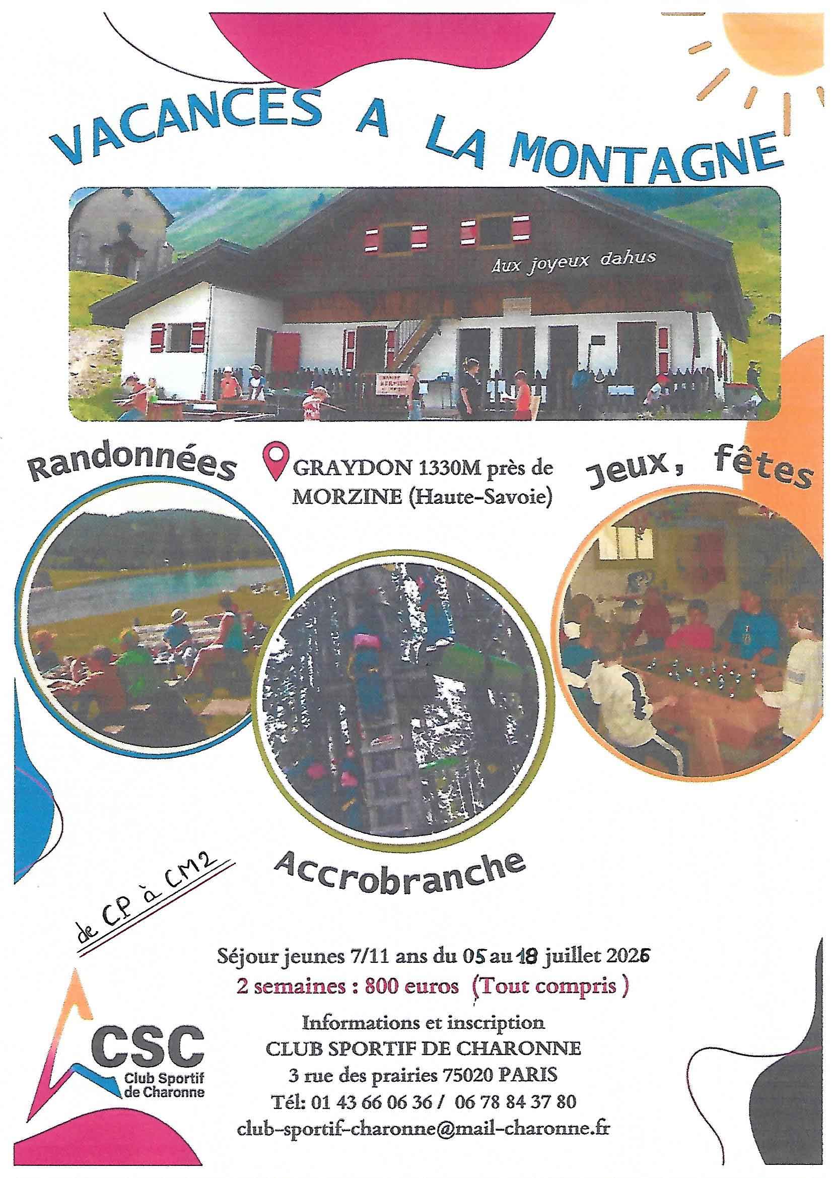 Un séjour de deux semaines est proposé en juillet au chalet « Aux Joyeux Dahus » sur la commune de Graydon, au pied du Roc d’Enfer près de Morzine en Haute Savoie.